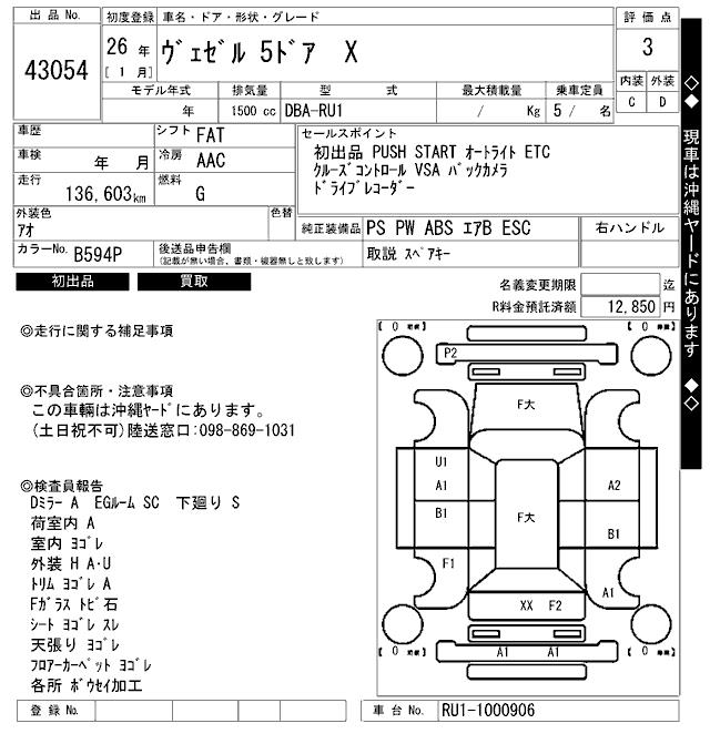 HONDA VEZEL - лот 43054
