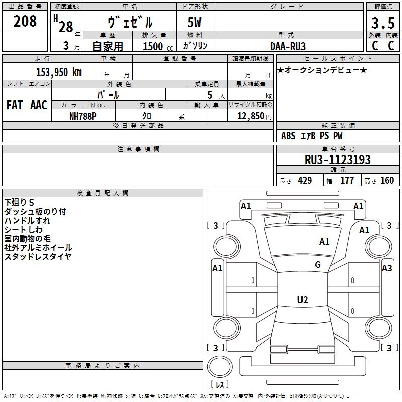 HONDA VEZEL - лот 208