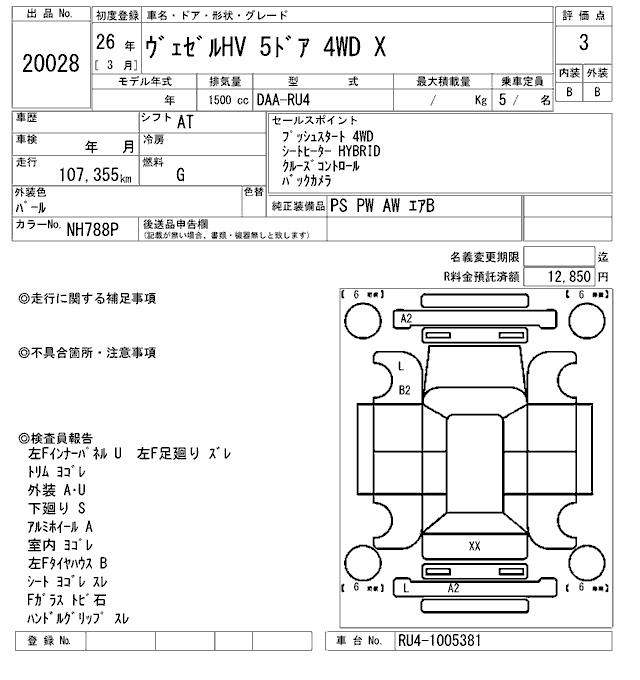 HONDA VEZEL - лот 20028