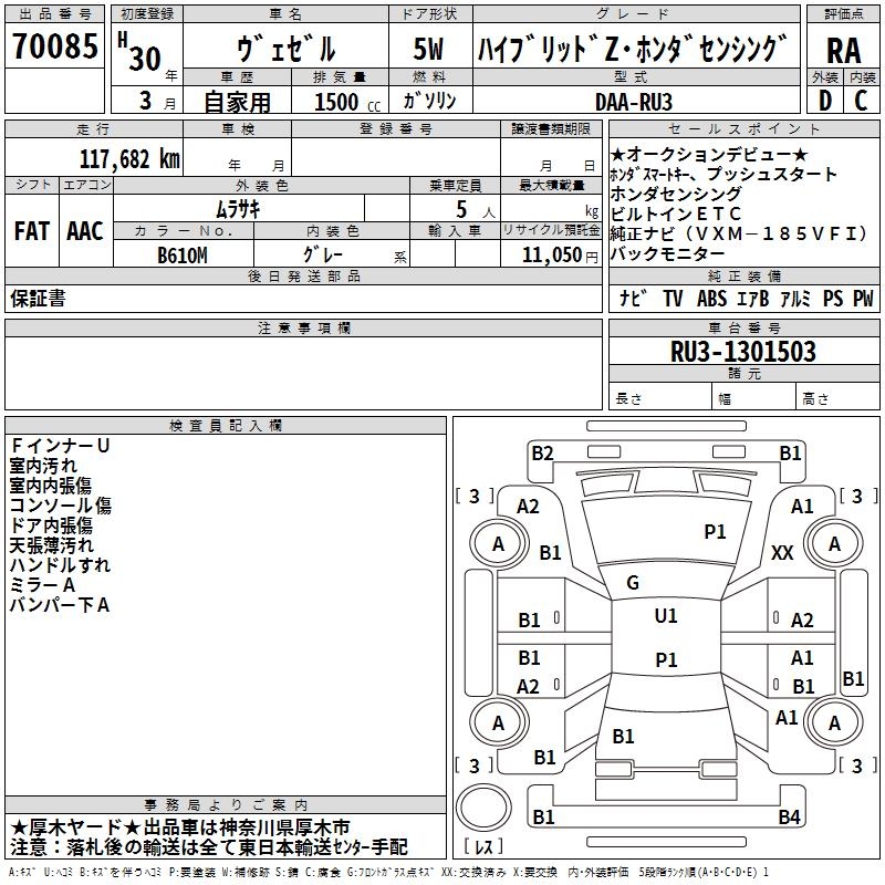HONDA VEZEL - лот 70085