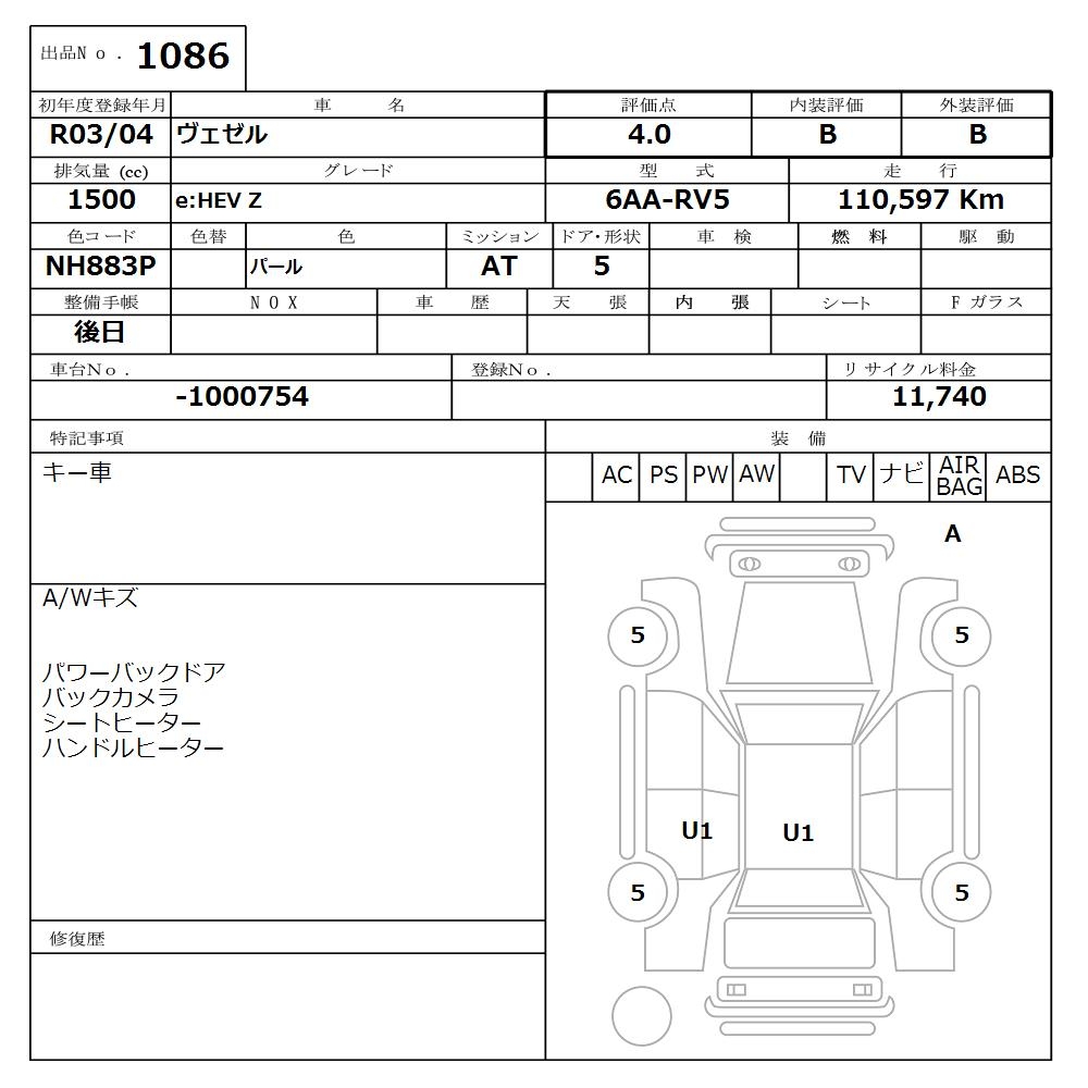 HONDA VEZEL - лот 1086