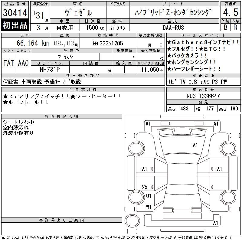 HONDA VEZEL - лот 30414