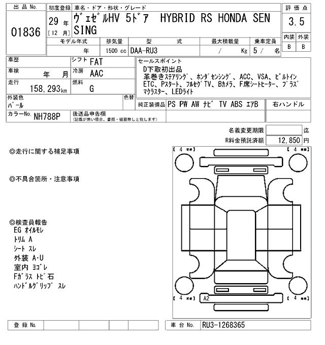 HONDA VEZEL - лот 1836
