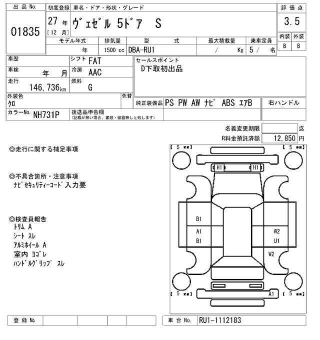 HONDA VEZEL - лот 1835