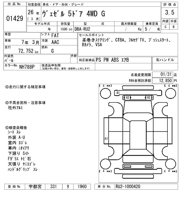 HONDA VEZEL - лот 1429