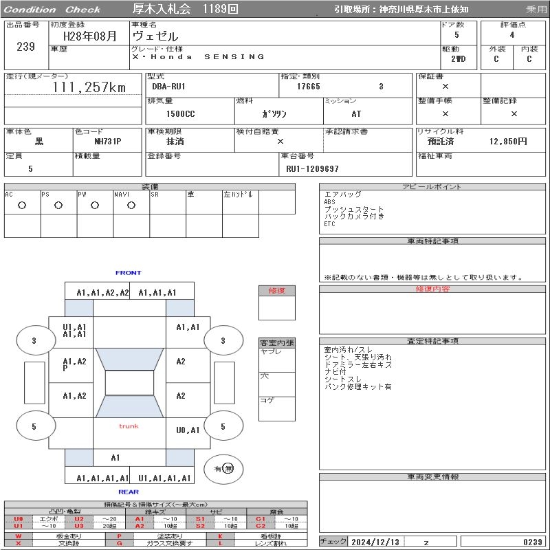 HONDA VEZEL - лот 239