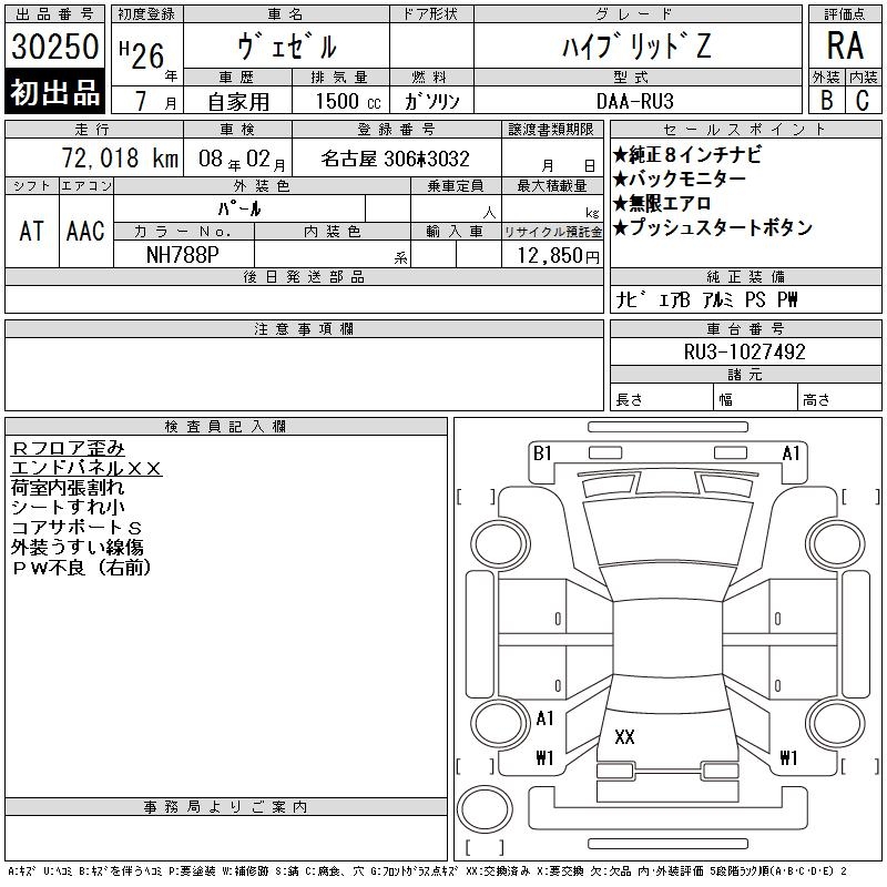 HONDA VEZEL - лот 30250