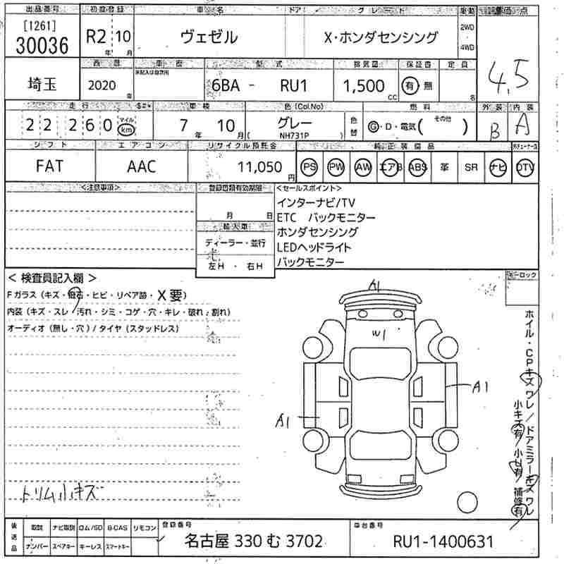 HONDA VEZEL - лот 30036