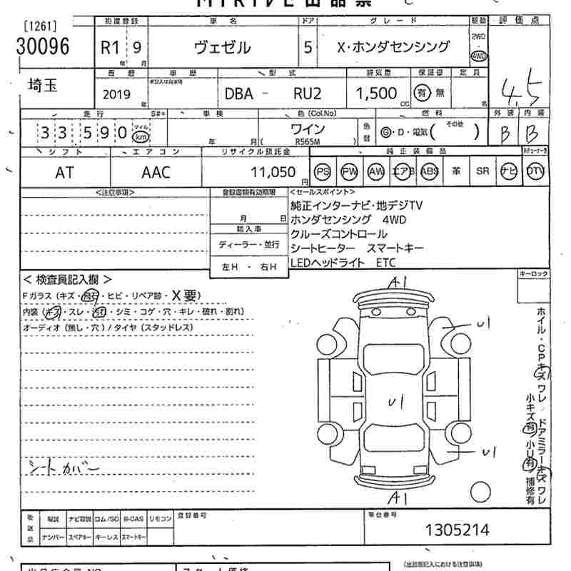 HONDA VEZEL - лот 30096