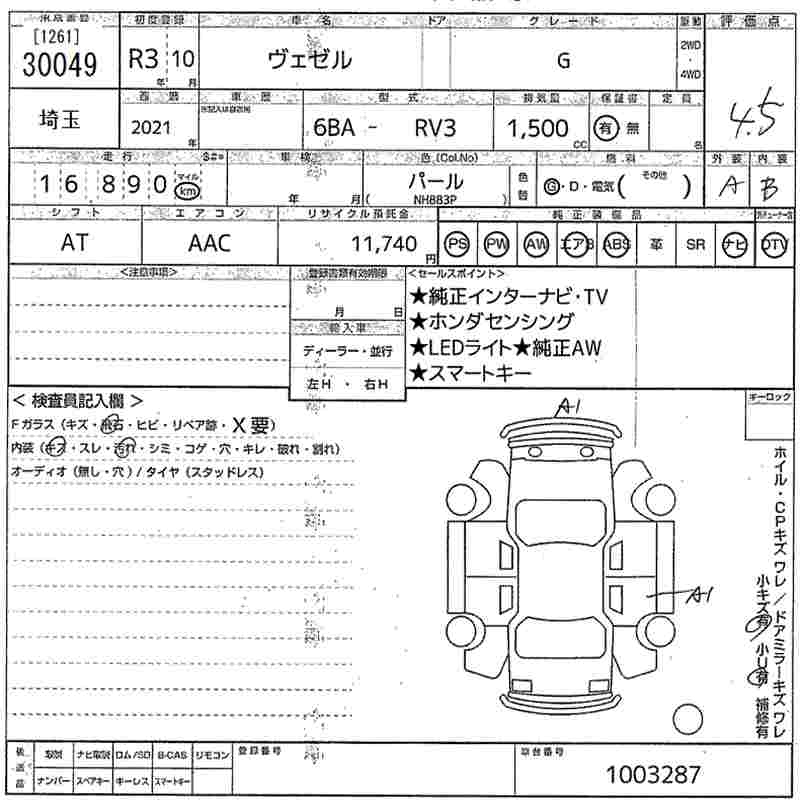 HONDA VEZEL - лот 30049