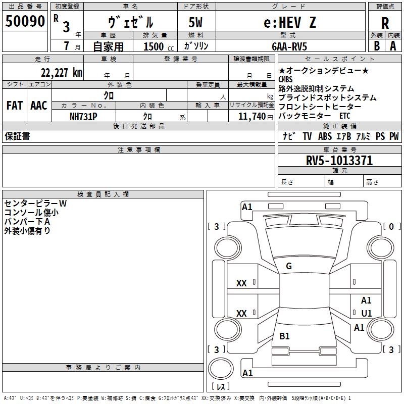 HONDA VEZEL - лот 50090