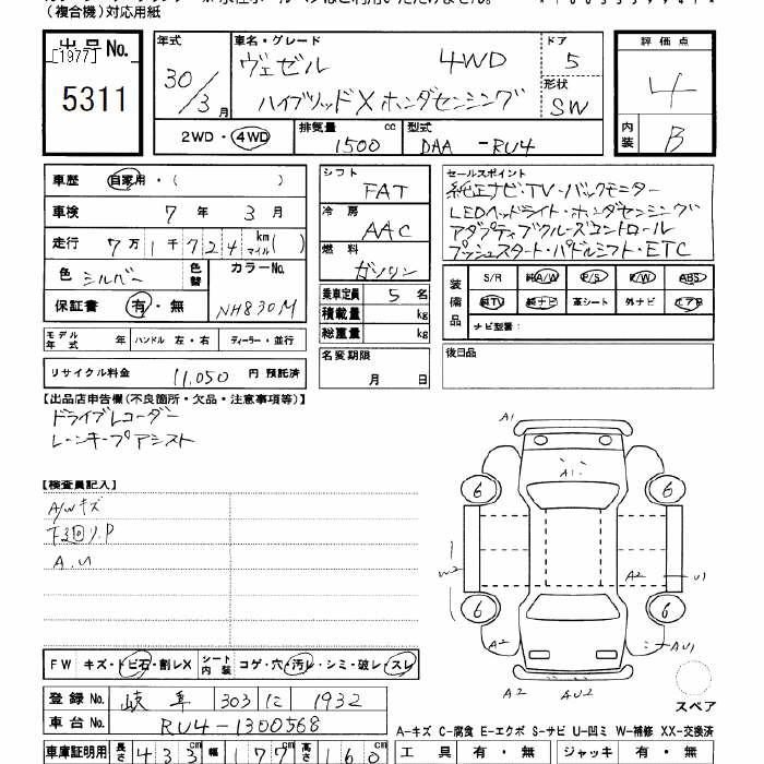 HONDA VEZEL - лот 5311