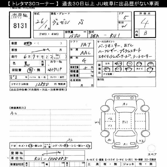 HONDA VEZEL - лот 8131