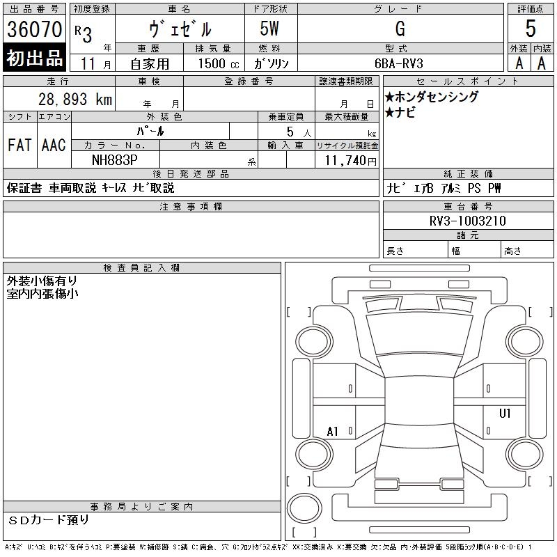 HONDA VEZEL - лот 36070