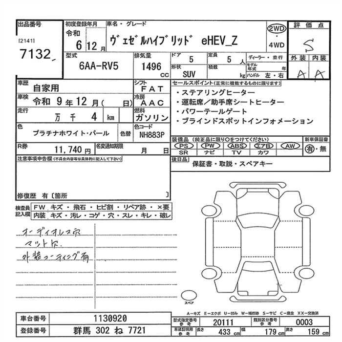 HONDA VEZEL - лот 7132