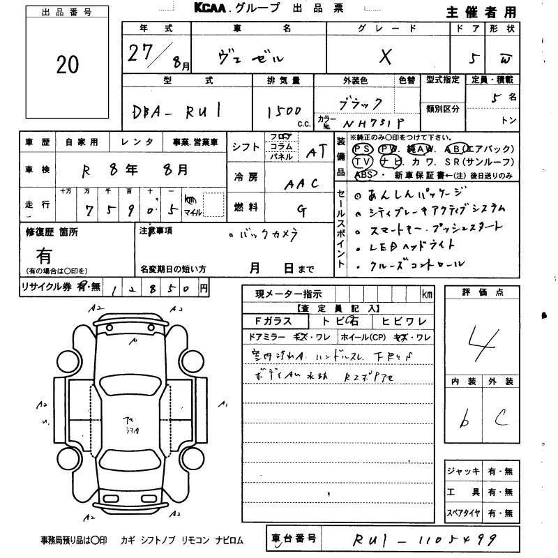 HONDA VEZEL - лот 20