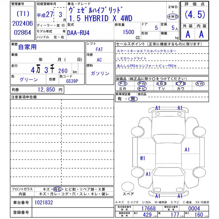 HONDA VEZEL - лот 27150