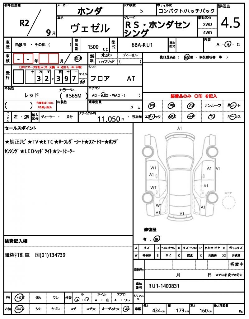 HONDA VEZEL - лот 9090