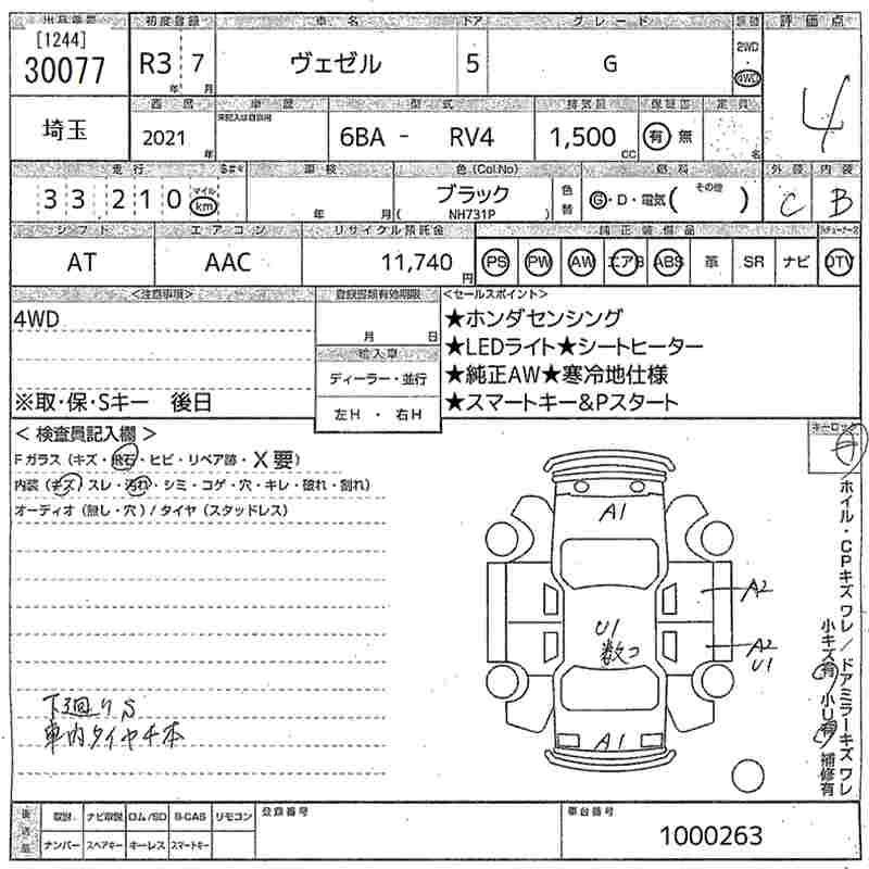 HONDA VEZEL G - лот 30077