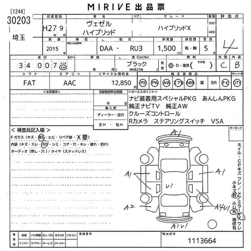 HONDA VEZEL hybrid X - лот 30203
