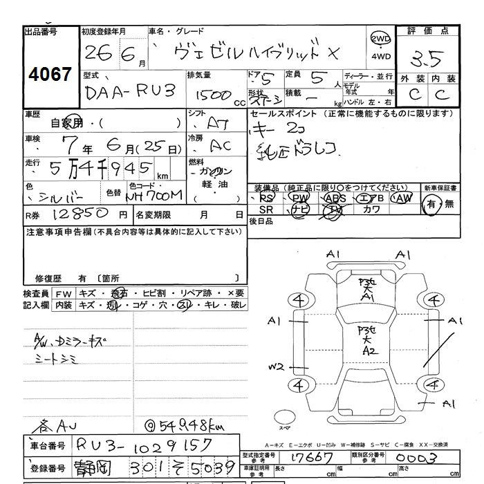 HONDA VEZEL hybrid X - лот 4067