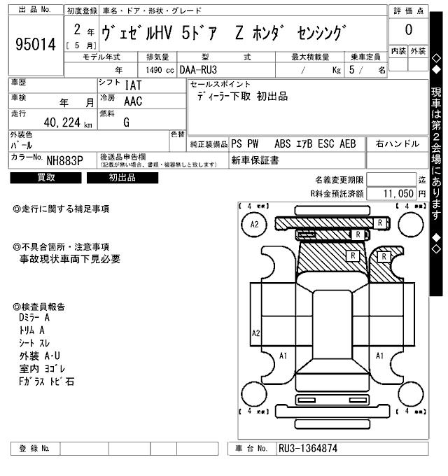 HONDA VEZEL - лот 95014
