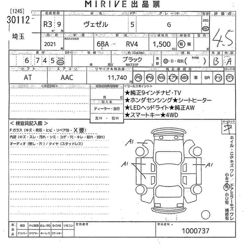 HONDA VEZEL - лот 30112