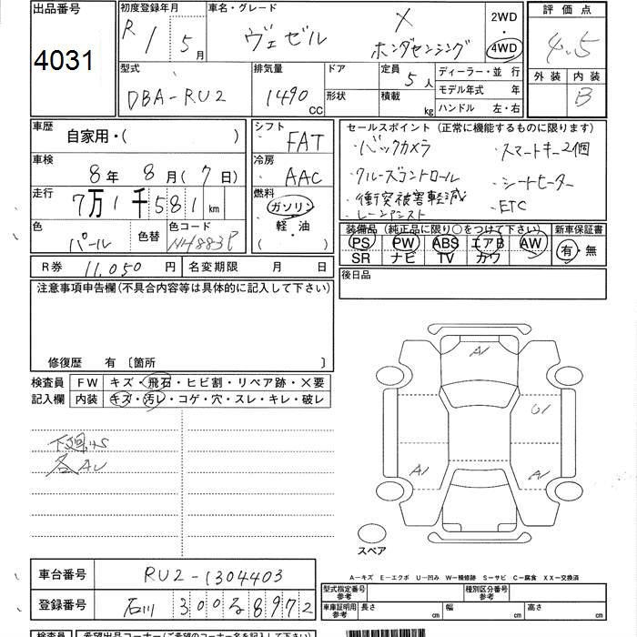 HONDA VEZEL - лот 4031