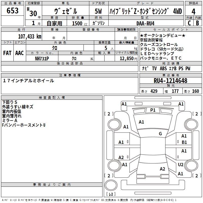 HONDA VEZEL - лот 653