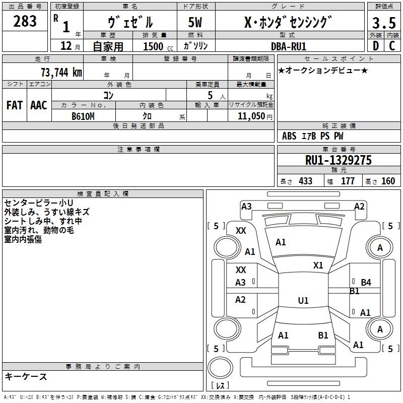 HONDA VEZEL - лот 283
