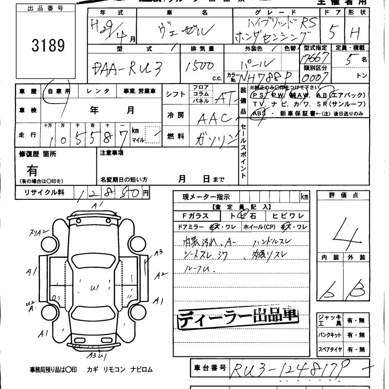 HONDA VEZEL - лот 3189