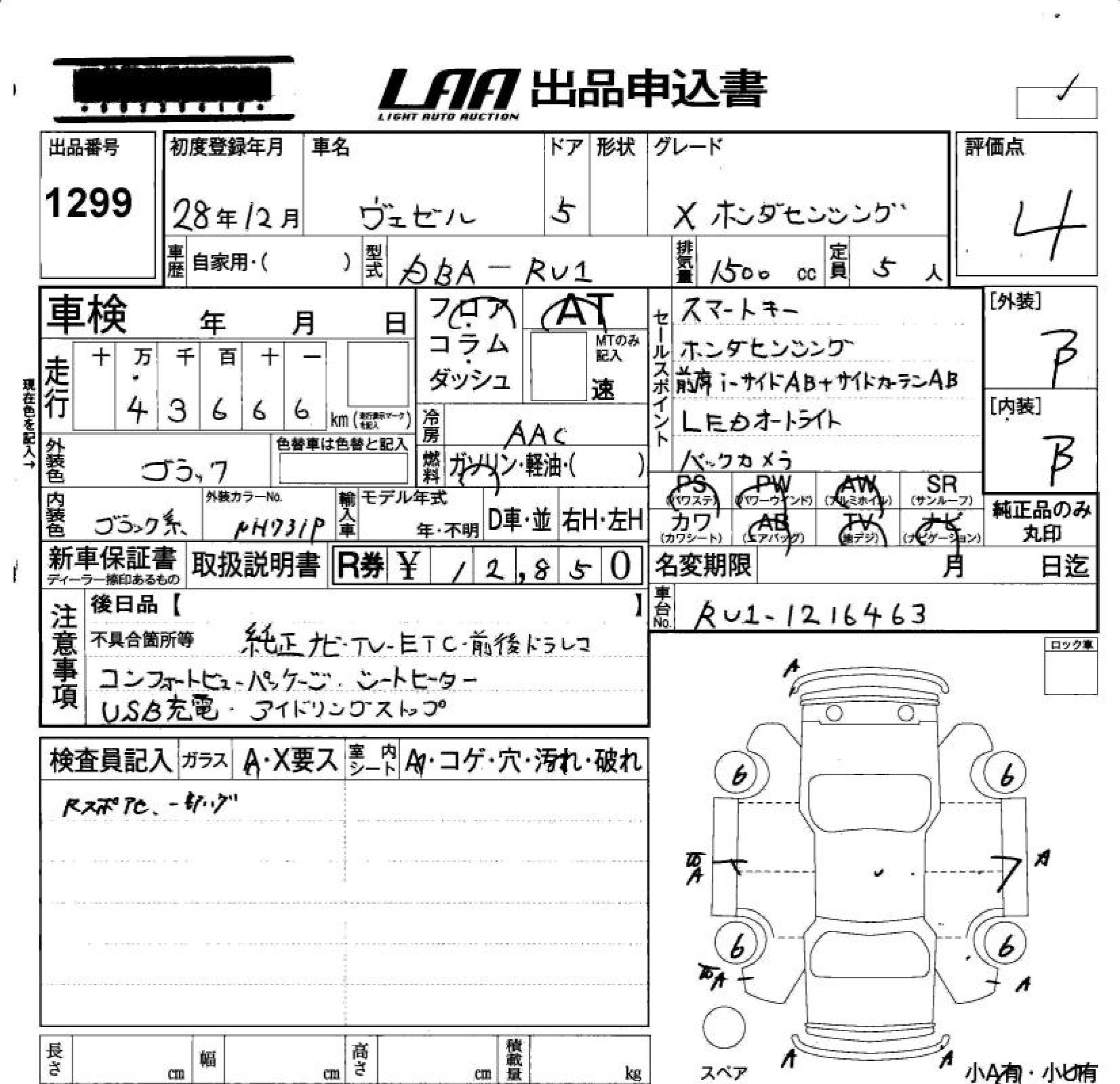 HONDA VEZEL - лот 1299