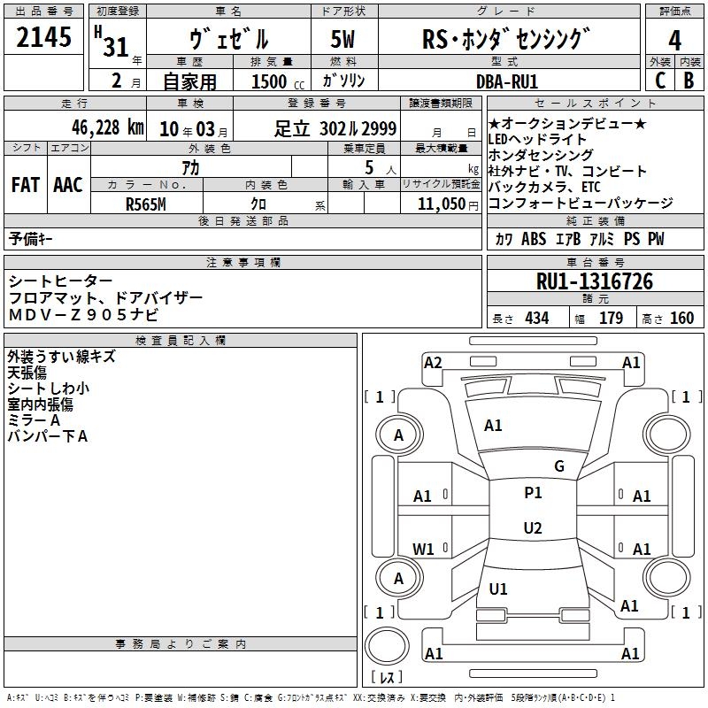 HONDA VEZEL - лот 2145