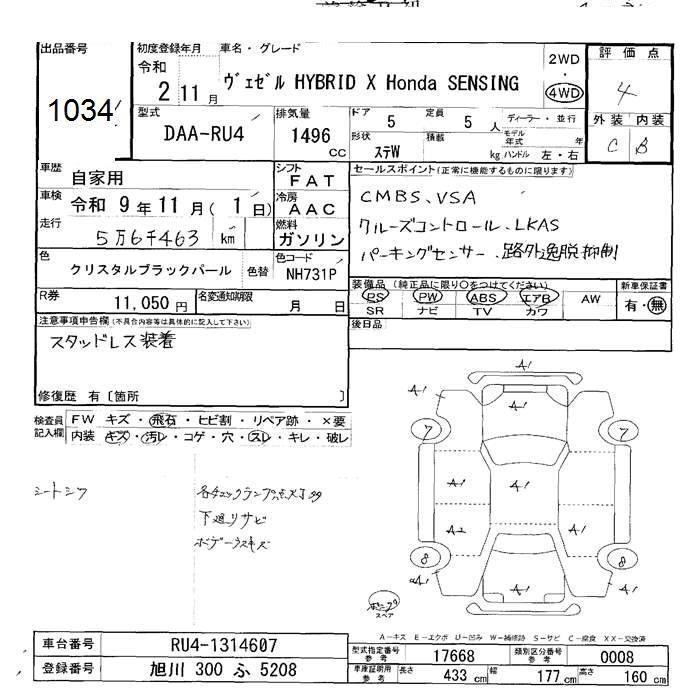 HONDA VEZEL - лот 1034