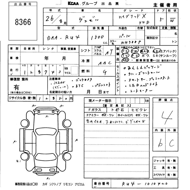 HONDA VEZEL - лот 8366
