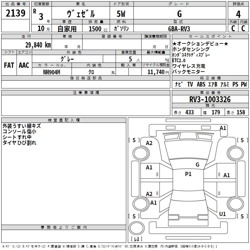 HONDA VEZEL - лот 2139