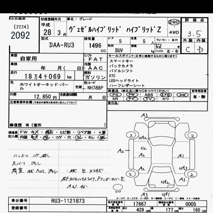 HONDA VEZEL - лот 2092