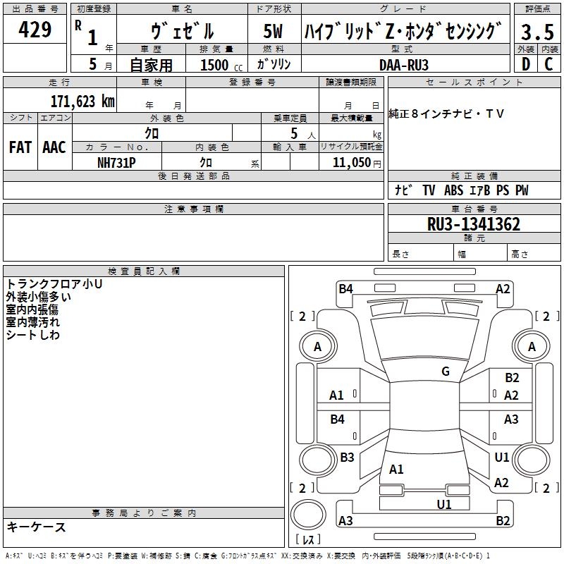 HONDA VEZEL - лот 429
