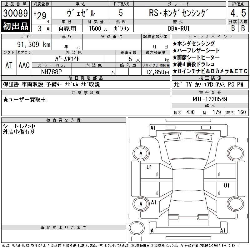 HONDA VEZEL - лот 30089