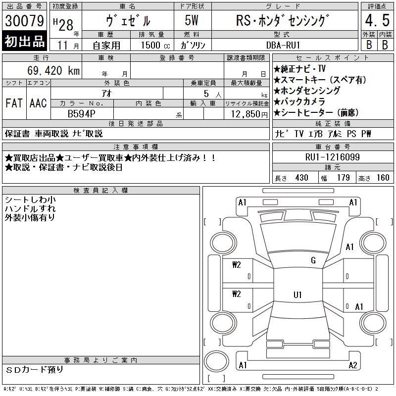 HONDA VEZEL - лот 30079