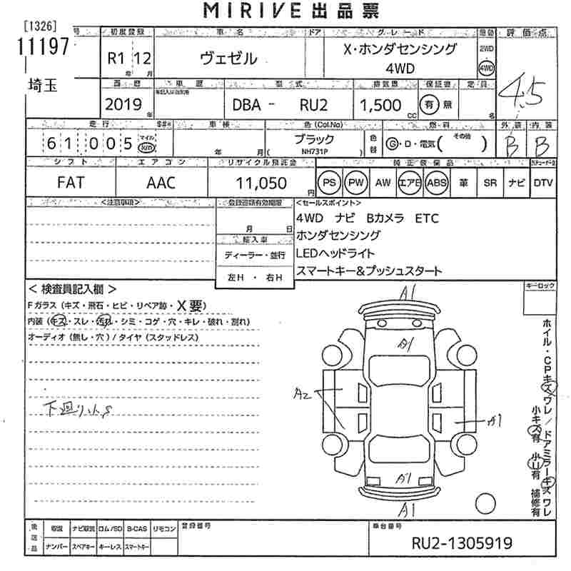 HONDA VEZEL - лот 11197