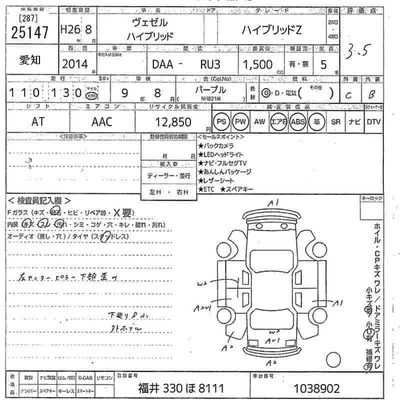 HONDA VEZEL - лот 25147
