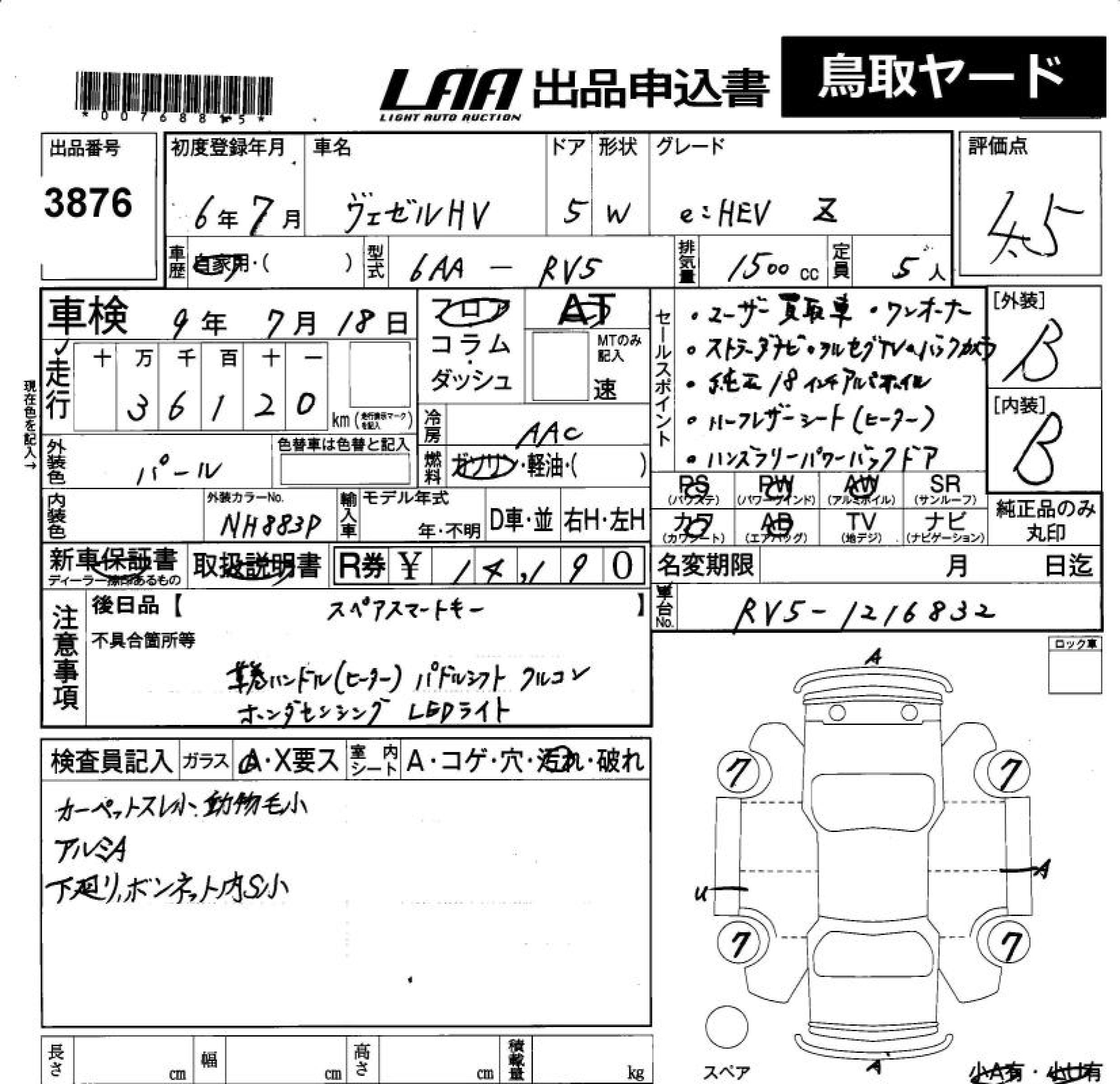 HONDA VEZEL - лот 3876