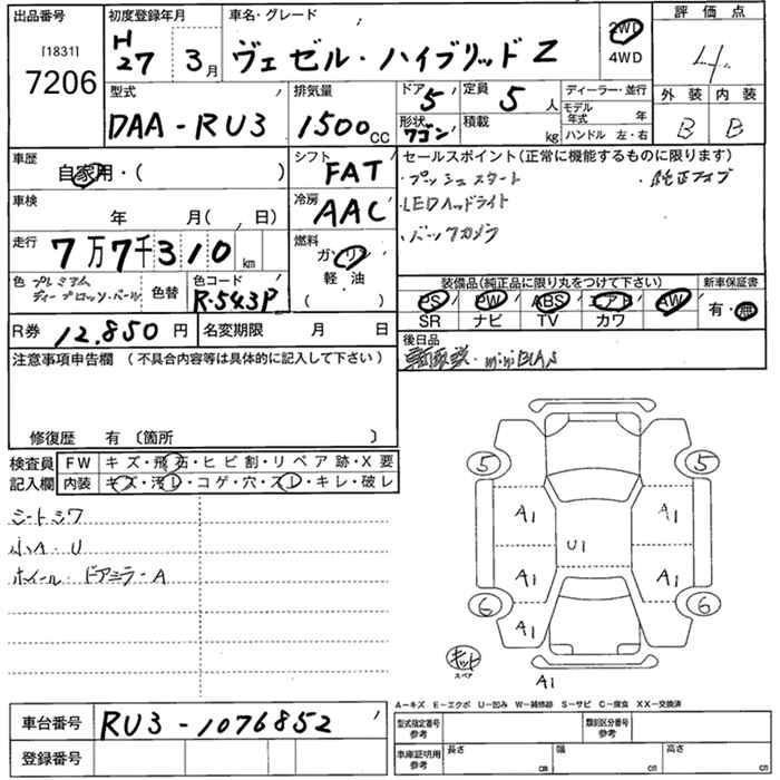 HONDA VEZEL - лот 7206