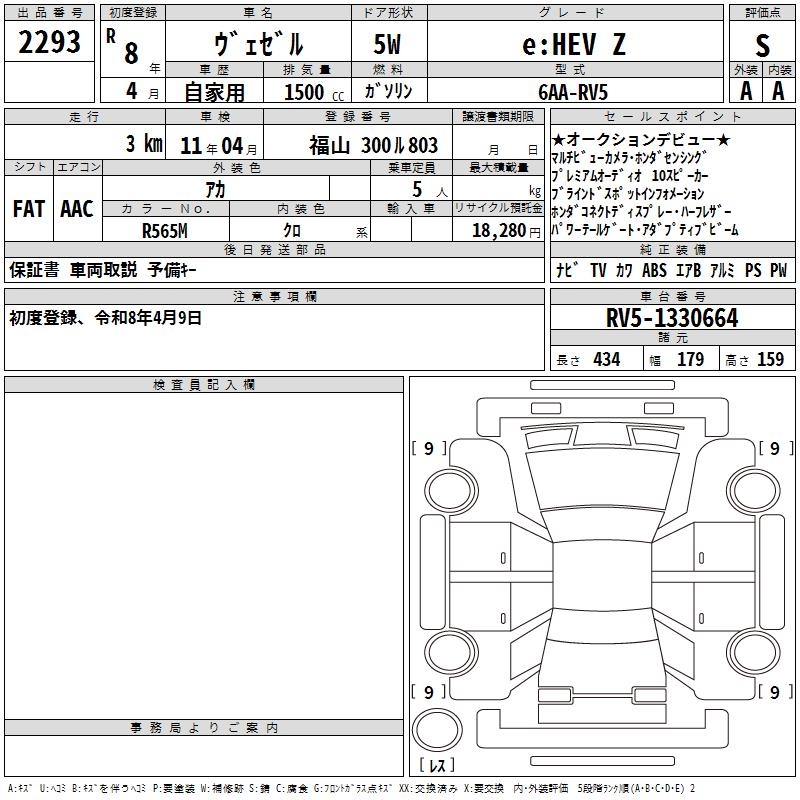 HONDA VEZEL - лот 2293