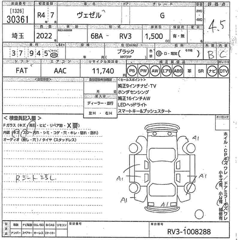HONDA VEZEL - лот 30361