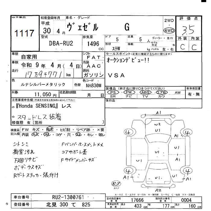 HONDA VEZEL - лот 1117