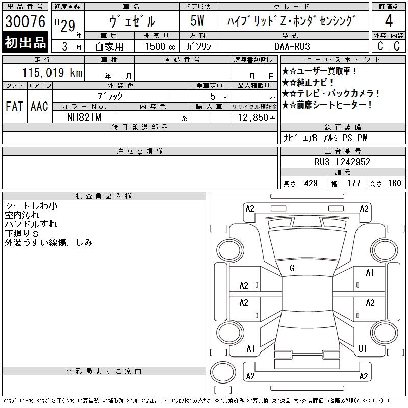 HONDA VEZEL - лот 30076