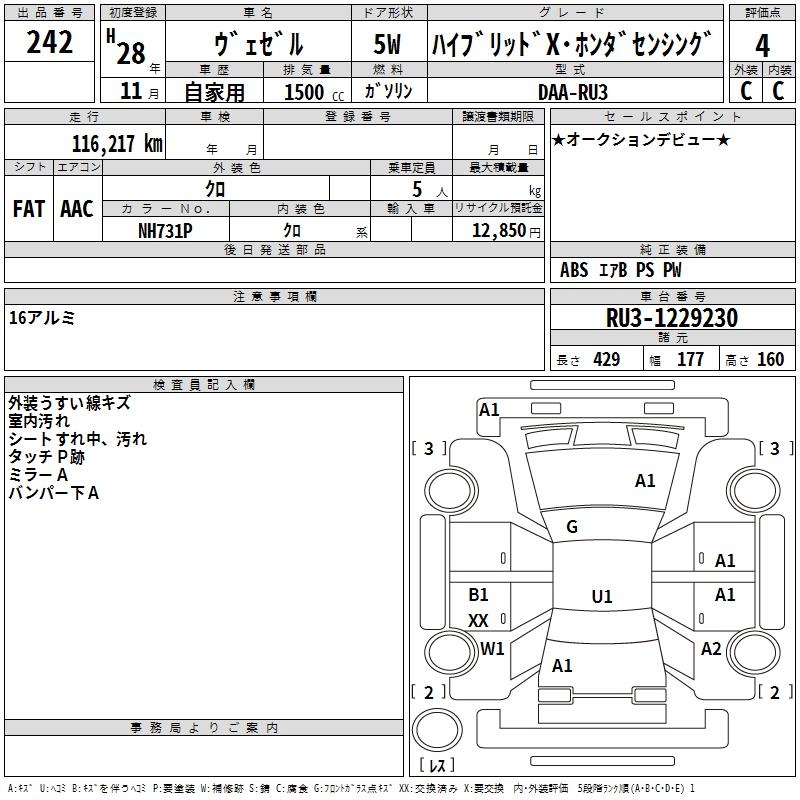 HONDA VEZEL - лот 242