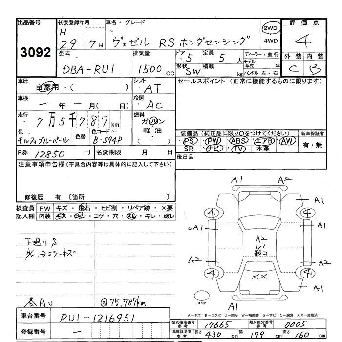 HONDA VEZEL - лот 3092